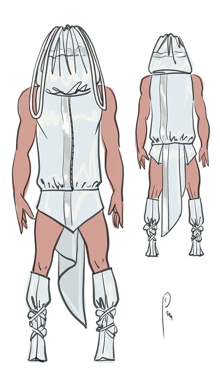 художник з костюмів — розробка ескізів костюмів, підбір тканин і матеріалів.